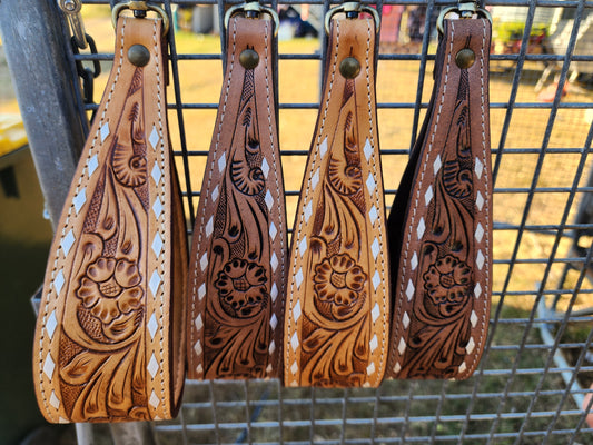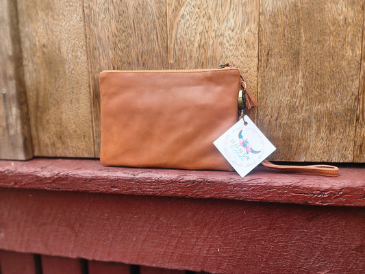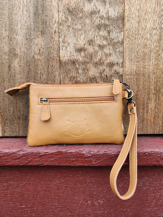 Tooled leather wristlet- Tan